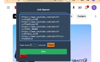 拡張機能の使用は簡単です。Link Openerアイコンをクリックするだけで、ポップアップインターフェースが表示されます。各URLを新しい行に入力します。リンク間の秒数を指定し、「開始」ボタンをクリックします。拡張機能は、指定された間隔に従ってリンクを新しいタブで開きます。